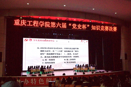 为深入学习贯彻党的十九届五中全会精神,扎实开展抗美援朝、改革开放主题教育学习,继续发扬党的优良传统和作风,2020年12月23日下午,重庆工程学院第六届“党史杯”大学生党员知识竞赛决赛在学校学术报告厅举行,本次竞赛由中共重庆工程学院委员会组织部主办,学生党员实践教育中心承办。