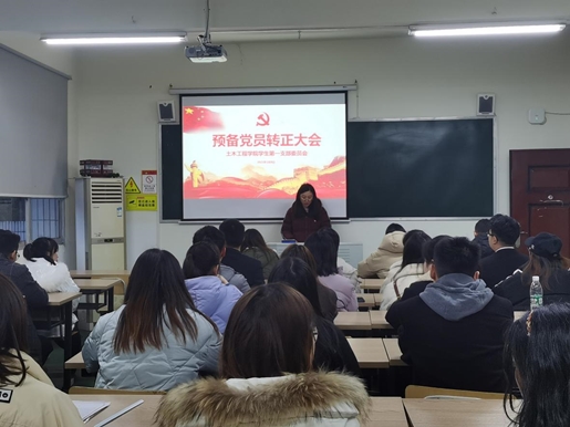 为了响应党的号召,进一步加强党员队伍建设,为党的发展建设储备新生力量。土木工程学院学生第一党支部于2021年1月5日18:00—19:00在第一教学楼301教室召开预备党员转正支部大会。肖思书记主持此次会议,支部全体(预备)党员参加此次大会。