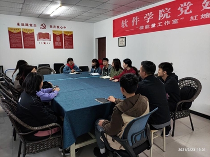 重庆工程学院软件学院“微能量”党支部书记工作室的红烛交心团第一期沙龙活动暨红色文化宣讲团“学党史——支部书记分享”活动于2021年3月23日19:00在和园1号党团服务站开展。软件学院第一党支部书记王薇同志从“红色文化宣讲人的成长故事”入手,结合上一学期红色文化宣讲团的情况,向红色文化宣讲团的团员们进行分享,希望把党的历史学习好、总结好,把党的成功经验传承好、发扬好。在学院党总支的指导下,本学期红色文化宣讲团开展“党史周周讲”系列活动,做到学史明理、学史增信、学史崇德、学史力行。最后,王薇书记为红色文化宣讲团分享了她自己学习党史的初心和收获,激励大家学党史、悟思想、办实事、开新局,做优秀宣讲员。