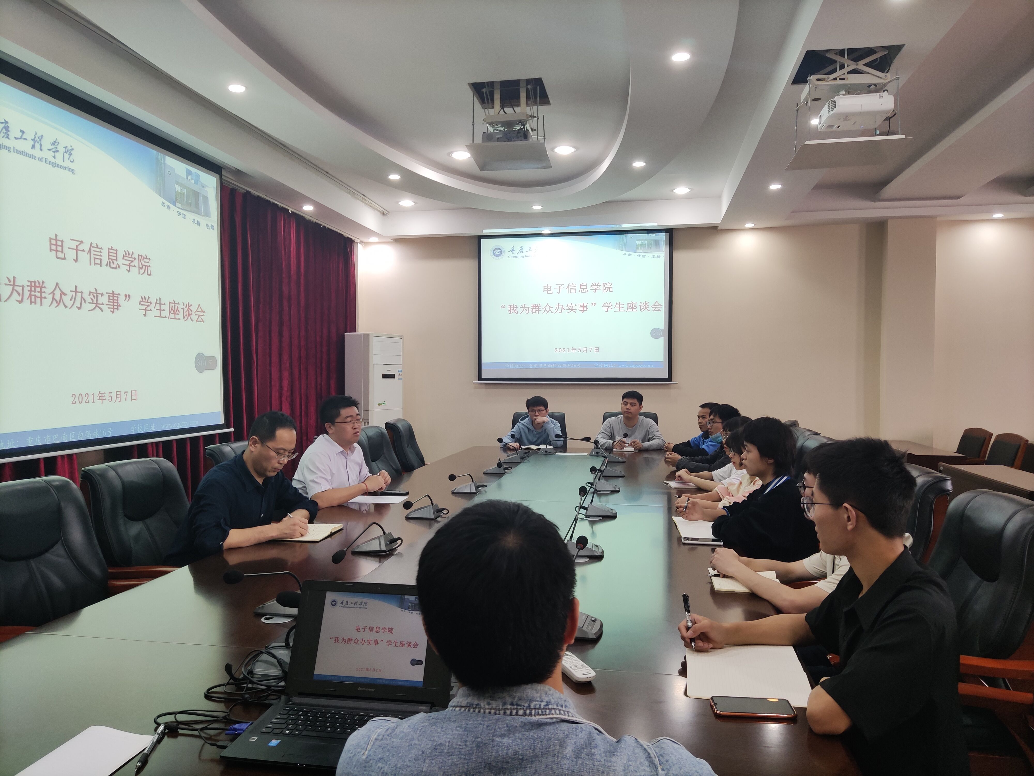 为深入推进党史学习教育,电子信息学院党总支认真开展“我为群众办实事”实践活动,5月7日下午在办公楼第七会议室和201会议室,党总支书记谭思宇、副院长陈成瑞、学生党支部书记宋文轩分别召开学生座谈会。