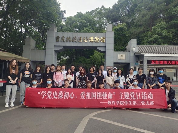 为纪念中国共产党成立100周年,激发支部同志的爱国热情,2021年5月19日下午软件学院学生第三党支部前往重庆抗战遗址博物馆开展“学党史葆初心,爱祖国担使命”主题党日活动。软件学院学生第三党支部书记王芳老师、组织委员易华琴老师、彭丽老师、在校学生党员以及发展对象共计31名师生参与了本次活动。
