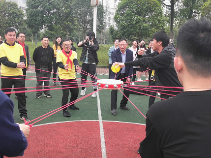 学校党委副书记兼常务副校长张业平在开幕式中致辞。随着由教职员工组成的八支方阵广播操比赛的结束,各项比赛正式拉开帷幕。本次赛事,除了拔河、田径4X100米接力赛等团体项目,100米跑、400米跑、铅球等个人项目这些传统的田径项目外,南泉校区还为老师们增设了“团体趣味竞技”项目,包括十人九足、有轨电车、击鼓颠球。教职员工们参与积极性很高,校长桂国庆,副校长张业平等领导也参与到了其中。整个赛场上欢声笑语不断,气氛活跃。老师们纷纷表示,每一届的健身运动会项目,参加感觉都非常有乐趣,在轻松愉悦的过程体验中也达到了强身健体的目的。