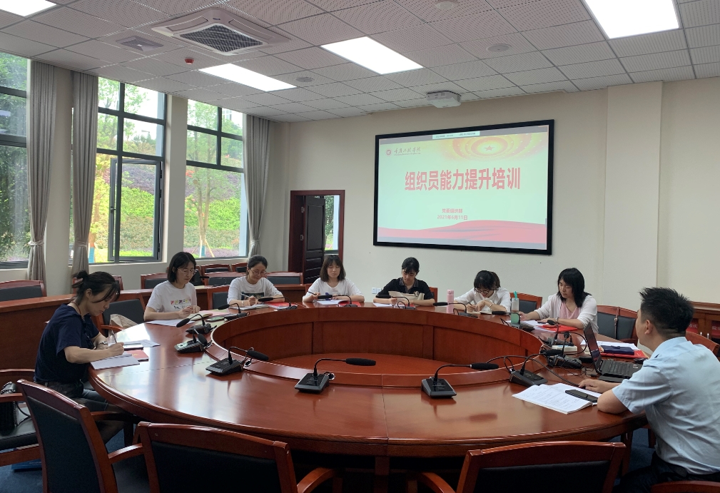 本网讯(图/文 组织部李毅)2021年6月11日下午,学校党委组织部在第二会议室组织召开专职组织员能力提升培训会。各基层党组织专职组织员9人参加培训。党委组织部部长邹均同志出席会议。培训会由党委组织部李毅主讲。