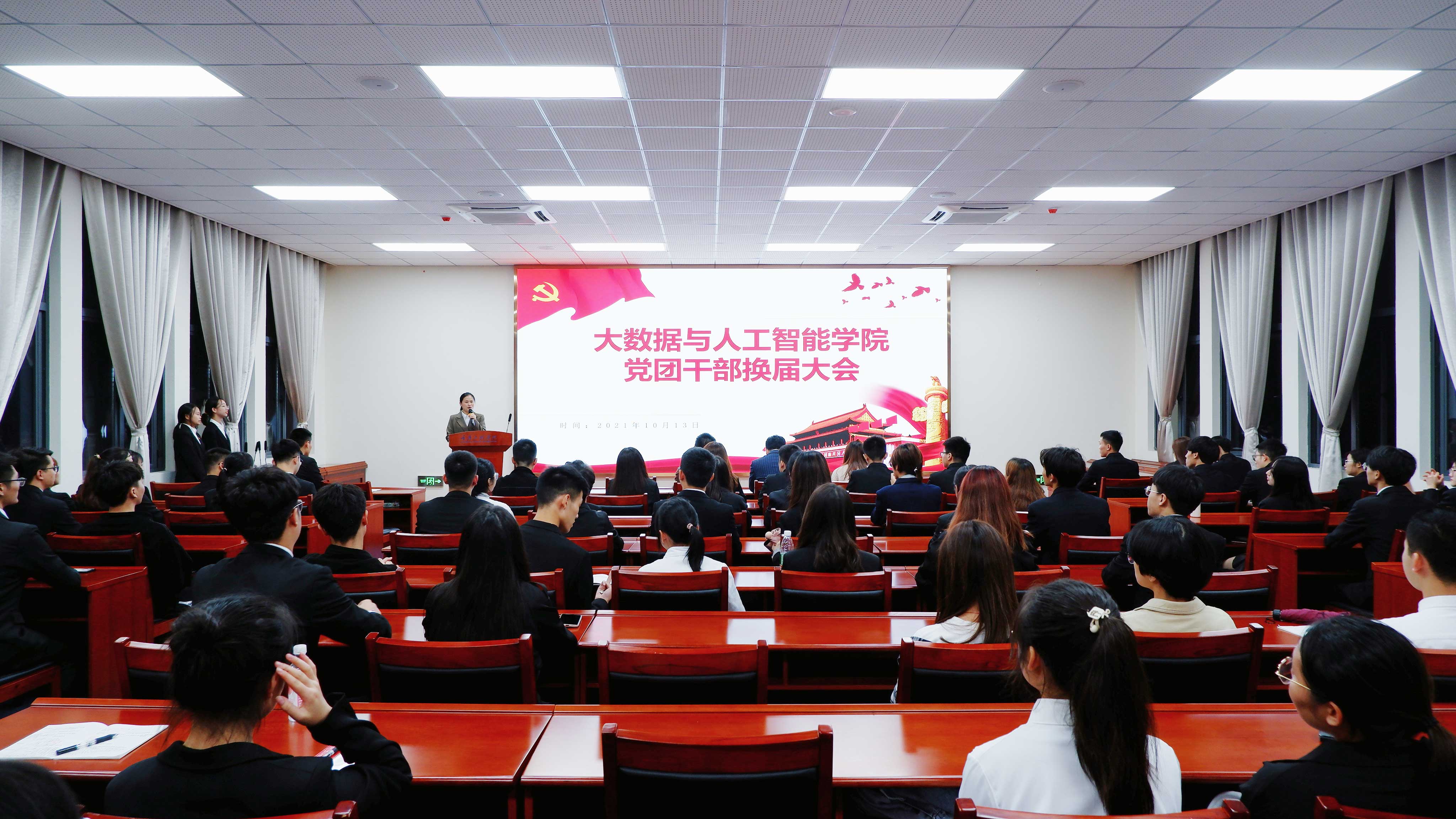 为进一步加强学院学生党员实践教育中心与团委学生会的建设,充分发挥学生团队力量,增强学院学生干部团队的凝聚力、战斗力,充分调动学生干部的工作积极性,培养新一批党团学生干部。2021年10月13日,大数据与人工智能学院在新办公楼第五会议室举行了第二届党团干部换届大会。学院党支部副书记尚伟、分团委书记王惠俊、组织委员蔡丽、宣传委员敬夫及学院党员实践教育中心与团委学生会全体学生干部共80人参与此次会议。