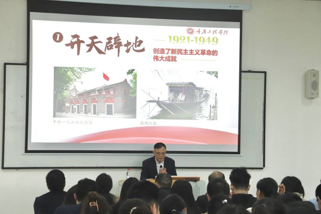 本次宣讲会,桂国庆校长围绕“32”字建党精神,从“丰功伟绩,恢宏史诗”“精神血脉,代代相传”和“以史为鉴,开创未来”三个方面对习近平总书记“七一”重要讲话精神进行深入解读。一百年来,我们党团结带领全国各族人民以“为有牺牲多壮志,敢教日月换新天”的大无畏英雄气概,书写了中华民族几千年历史上最恢宏的史诗——浴血奋战、百折不挠,创造了新民主主义革命的伟大成就;自力更生、发愤图强,创造了社会主义革命和建设的伟大成就;解放思想、锐意进取,创造了改革开放和社会主义现代化建设的伟大成就;自信自强、守正创新,统揽伟大斗争、伟大工程、伟大事业、伟大梦想,创造了新时代中国特色社会主义的伟大成就。