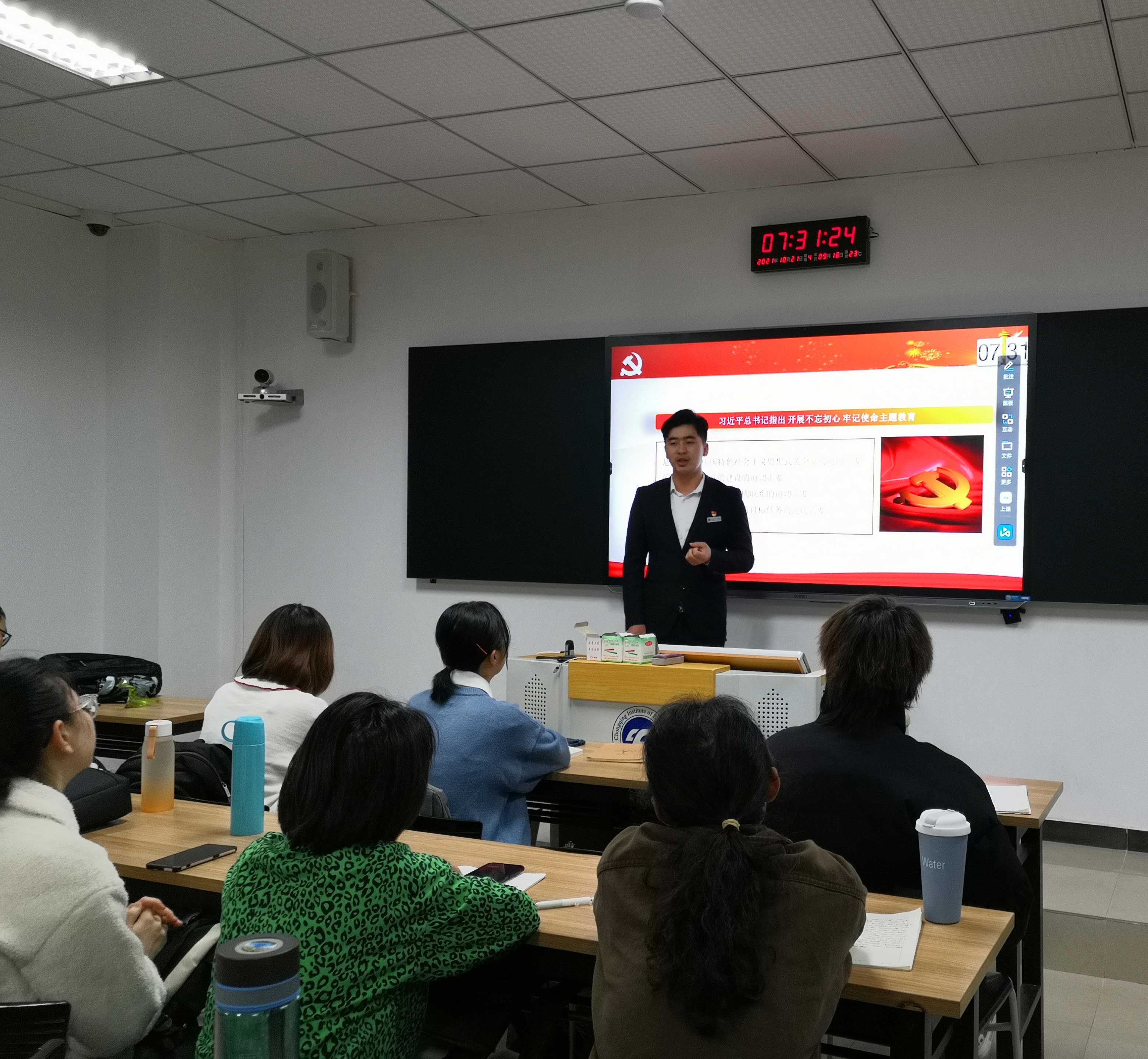 电子信息学院19级的6名预备党员谭珊珊、张波等同志。围绕主题"建党百年的光辉历程中感悟伟大成就"为大家生动地呈现党的百年奋斗画卷,强调始终坚持初心不忘使命,阐述了中国共产党百年奋斗史的根本主题是中华民族伟大复兴。
