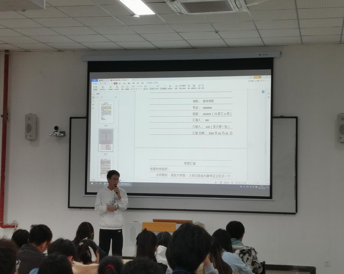 为深入学习贯彻习近平新时代中国特色社会主义思想,做好青年思想政治工作。2021年10月28日中午,软件学院学生党员实践教育中心在第六教学楼201开展关于20级入党积极分子思想汇报格式培训活动。本次培训由王超同志担任本次会议主持人,软件学院全体20级入党积极分子参加本次会议。