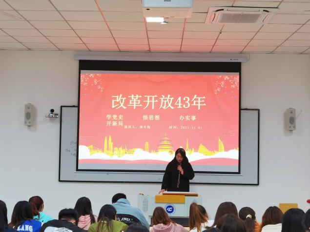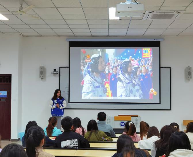 为深刻认识改革开放史,学习弘扬中国载人航天精神,培养同学们为国争光的使命感,2021年11月1日,管理学院学生党支部在6204教室开展了“致敬航天人,学习改革开放史”主题活动。本次活动由管理学院学生党员实践教育中心办公室干事田甜主持,管理学院各学生党支部共有90余名同学参加。