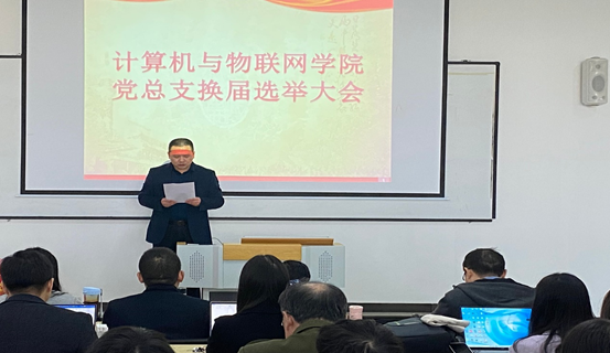 2021年11月10日,计算机与物联网学院党总支于第六教学楼201教室顺利举行党总支换届选举大会。此次换届选举大会由党总支组织员潘晓宇主持,全体师生党员及预备党员参会。