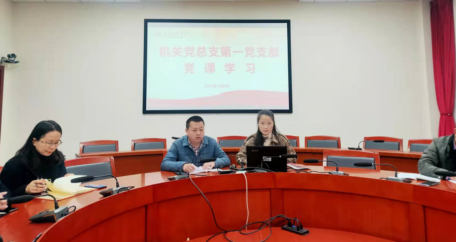 2021年12月8日上午,机关党总支第一党支部在学校办公楼第三会议室召开了党课学习会。会议由支部书记姜庆洲同志主持,机关第一党支部全体党员同志参加。