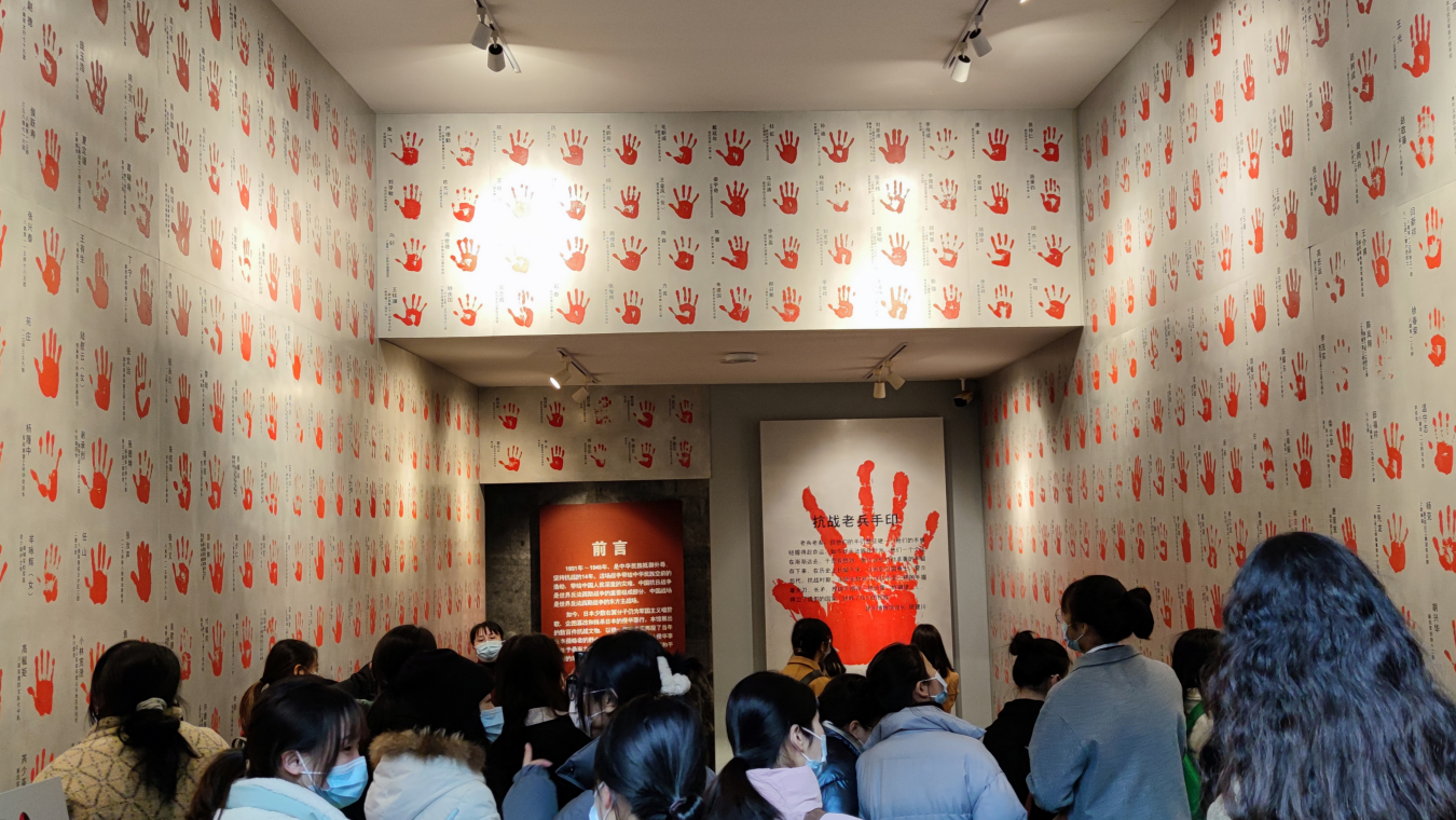 在抗战文物博物馆,同志们看到了墙上数百枚整齐分布的老兵手印,那是誓死奋斗的意志、是保家卫国的决心。