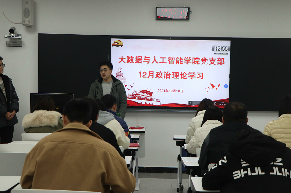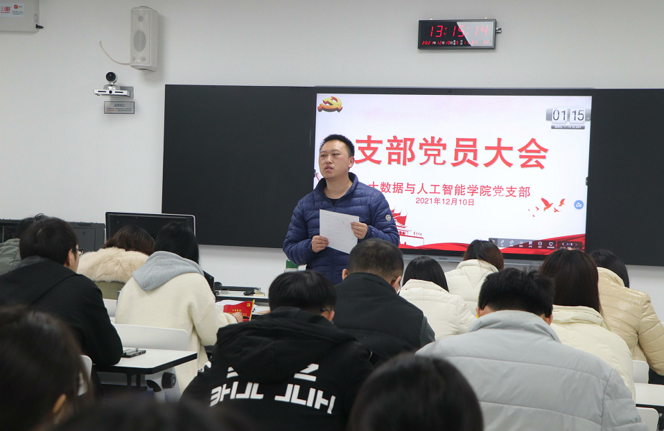 2021年12月10日,大数据与人工智能学院党支部在信息科技大楼206召开支部党员大会。参加本次大会的有学院党支部书记尚伟、组织兼统战委员蔡丽、宣传委员敬夫及本院全体党员。