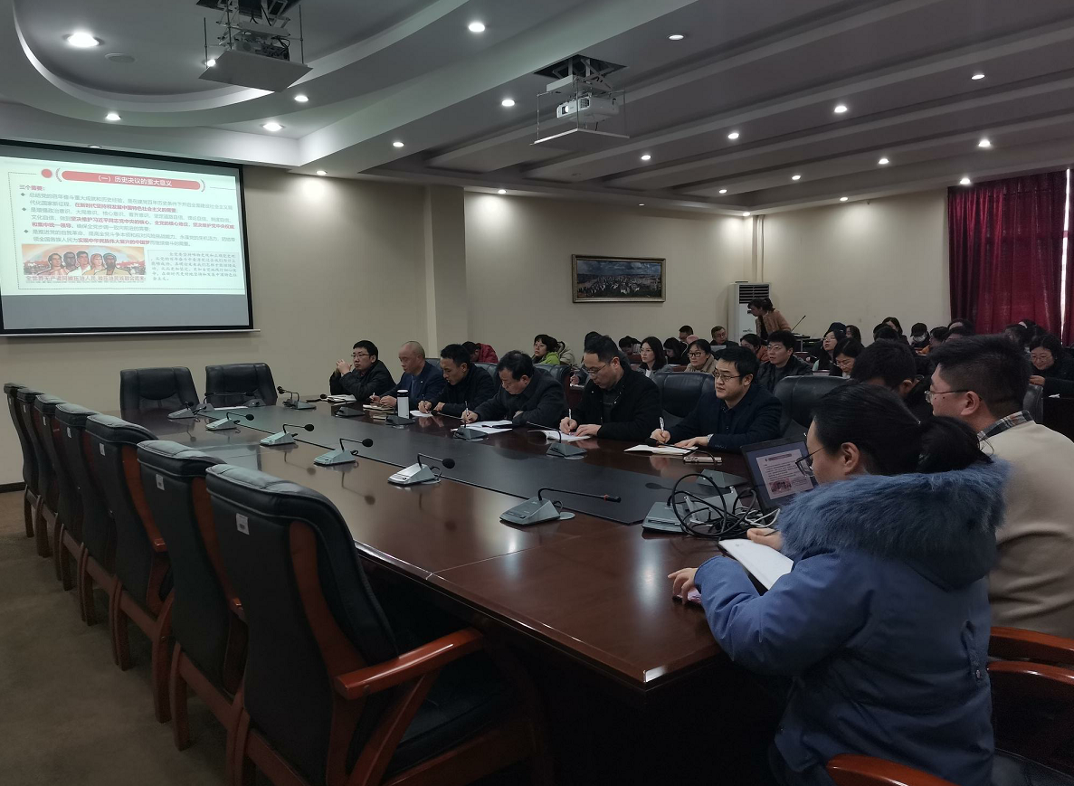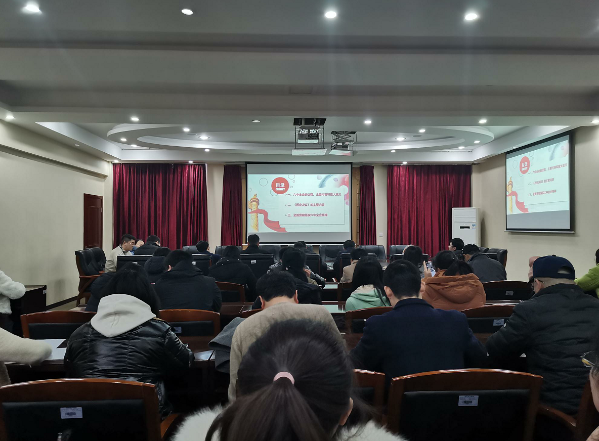 2021年12月15日,电子信息学院党总支在第七会议室组织召开十九届六中全会精神宣讲会。党总支书记谭思宇主持主讲,全体党员、教职工参加会议。