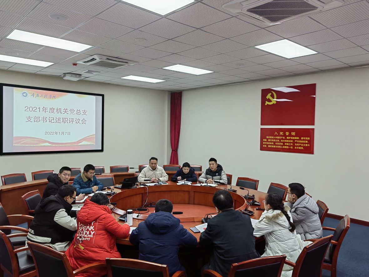 为不断提升我校机关党总支党建工作科学化、规范化水平,根据中共重庆市委教育工作委员会《关于开展2021年度高校和直属单位党组织书记抓基层党建述职评议考核工作的通知》(渝教工委函〔2021〕228号)文件精神,2022年1月7日下午,机关党总支在行政楼107会议室举行2021年支部书记述职评议会,总支全体委员、各支部书记参与会议。