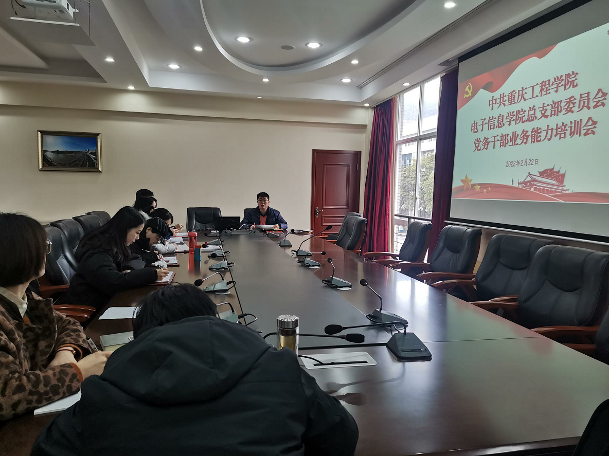 2022年2月22日,电子信息学院党总支在第七会议室召开党务干部业务能力培训会,会议由党总支书记谭思宇同志主持,教师党支部、学生第一党支部、学生第二党支部全体委员共计11人参加。