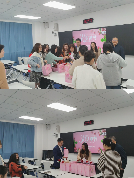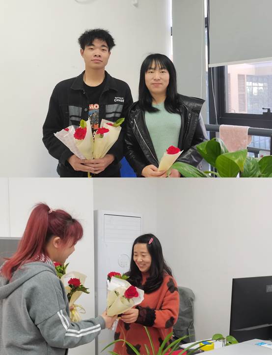 不仅是我们大数据与人工智能学院分工会为我们女神送上了祝福,我们的学生干部和工会学生助理也精心为老师们准备的鲜花,祝福老师们节日快乐。