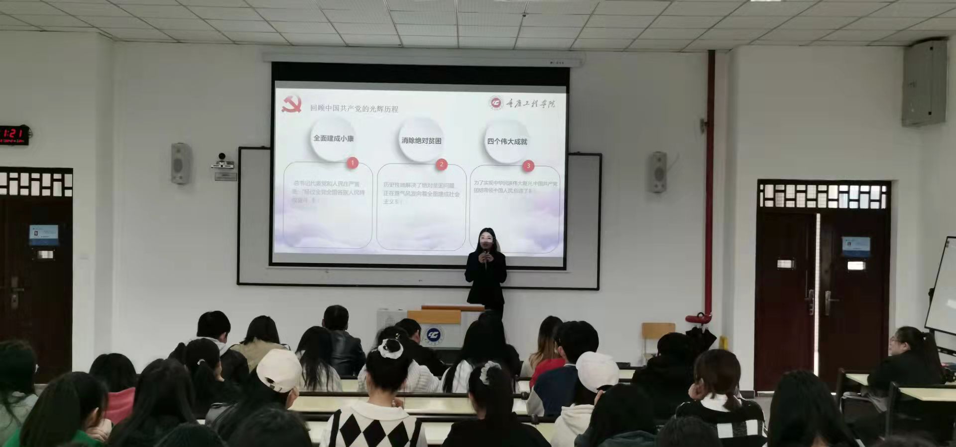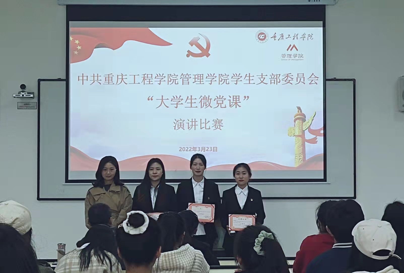 为弘扬伟大建党精神,推进学校高质量发发展,将“我为评估做贡献”系列活动推向深入,2022年3月23日,管理学院学生党支部在6204教室开展了学原著、讲党史、迎评估“大学生微党课”演讲比赛。学院党总支书记刘达斌、组织委员荣菁菁、宣传委员王燕楠、学院学生党员实践教育中心负责人冉露、学院团委学生会主席团成员丁月敏担任比赛评委。学生党支部全体党员和预备党员参加了比赛。