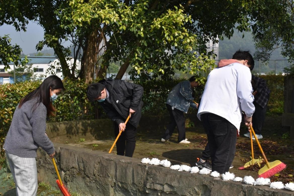 同志们在和园一号党员工作站集合,制作祭奠的白花,随后同志们来到素质拓展基地吕超同志的墓碑前,清扫整理、清理环境。