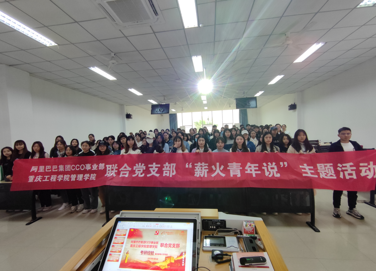 为展现支部考研党员风采,增强同学们考研备战的信心,2022年4月6日下午,阿里巴巴集团CCO事业部·重庆工程学院管理学院联合党支部在6204教室开展了“薪火青年说”第五期“党员先锋,激励你我”主题活动。管理学院各学生党支部预备党员、发展对象、积极分子共计98名同学参与活动。