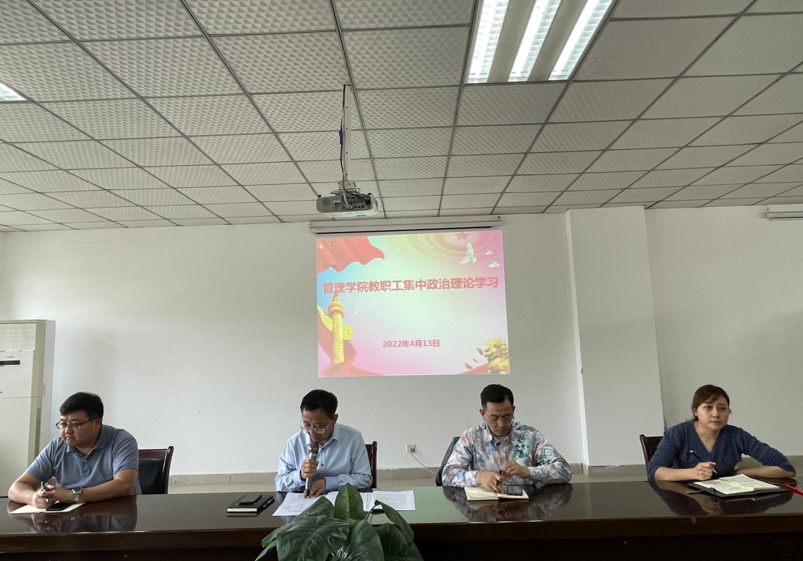 2022年4月13日,管理学院在3602会议室开展了教职工集中政治理论学习。校长助理兼学院院长简玉刚,学院党总支书记刘达斌,学院副院长李玲、李英吉以及学院全体教职工参加了本次学习。