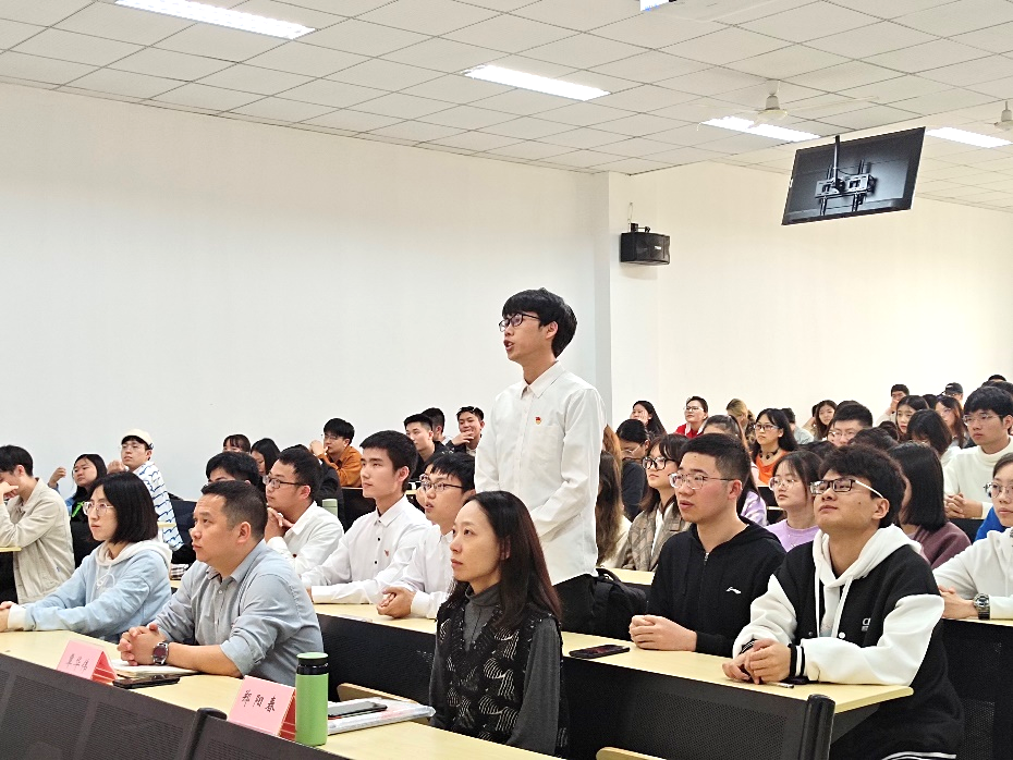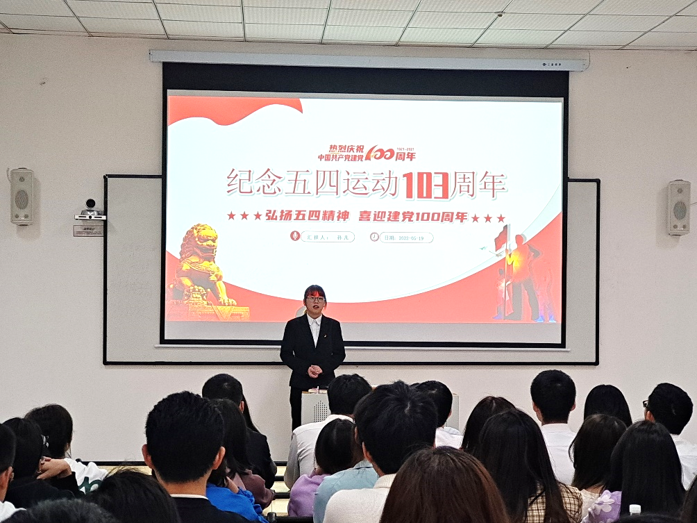 活动开始,由党小组同志宣讲和短片放映,带领同志们回顾了五四运动的背景、过程及历史意义。从巴黎和会上的外交失败到青年学生的示威游行,展现出中国青年追求民族独立和发展进步的强烈决心,让现场同志们在思想上接受五四精神的洗礼,激发同志们的爱国精神。再由党小组同志们带来朗诵,激扬慷慨的声音展现出传承五四精神的坚定决心和饱满热情,深切表达出在五四精神的感召下,青年一代承担起历史使命和时代责任的信念和决心。最后,覃华伟书记总结到:新时代中国青年要树立远大理想、热爱伟大祖国、担当时代责任、锤炼品德修为,自觉树立和践行计算机与物联网学院码农精神,敬业、精业、专业。