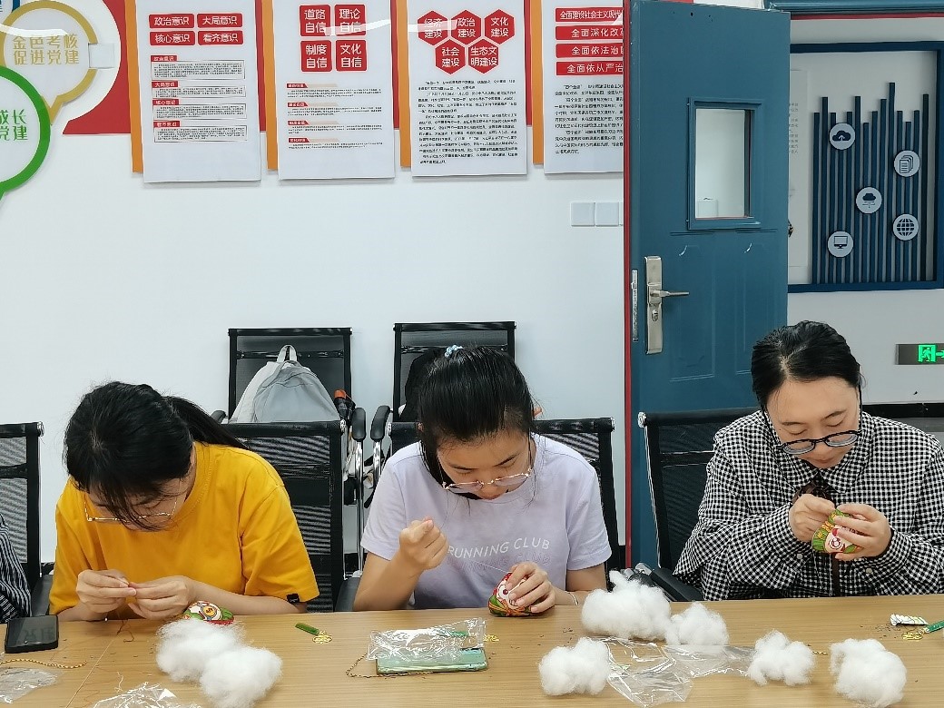 为弘扬中华民族传统文化,传承香囊制作的传统习俗,在端午节来临之际,2022年6月2日中午,计算机与物联网学院分工会联合师生党支部于7806党建之家共同开展了“浓情迎端午,巧手做香囊”新时代文明践活动。