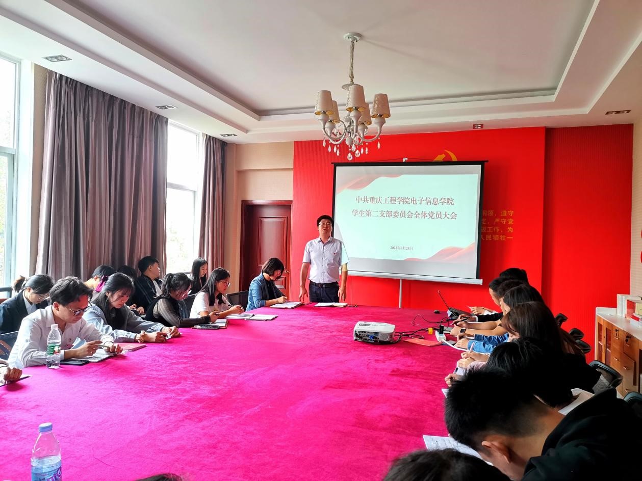 9月28日,电子信息学院学生第二党支部在学院党员活动室召开支部党员大会。大会由学生第二党支部书记肖璐同志主持,学院党总支书记谭思宇同志、组织员魏登雪同志及学生第二党支部全体党员参加会议。