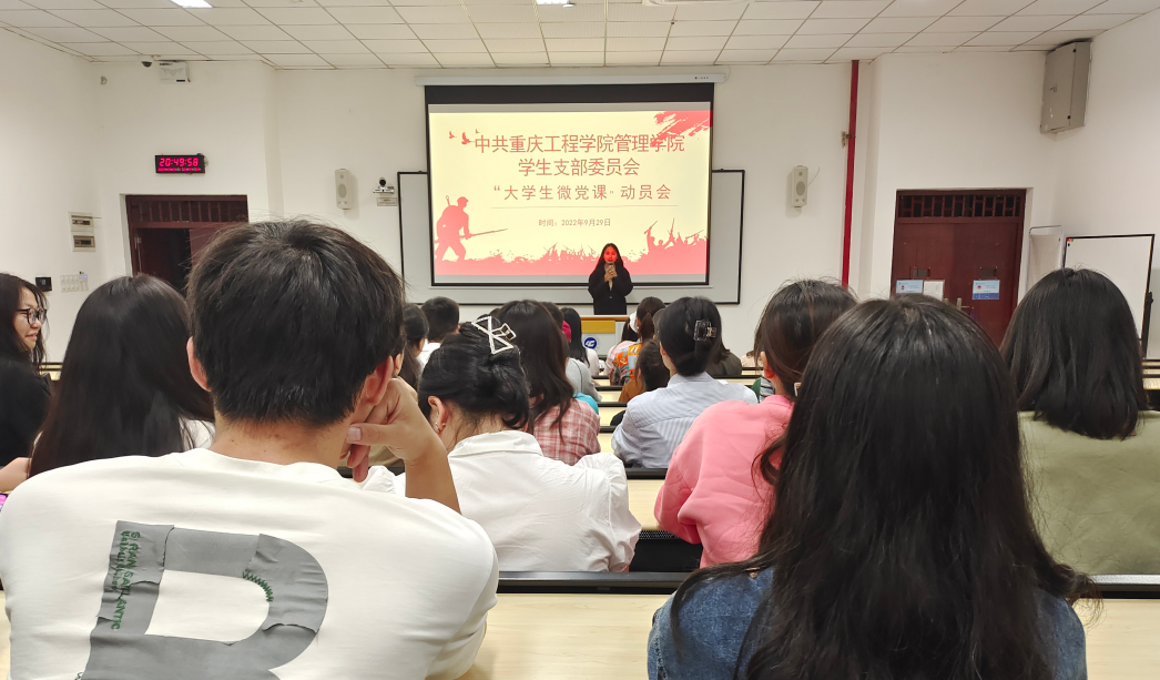 (文/图 管理学院 邹学微)为进一步搞好管理学院特色党建活动,用青年奋斗迎接党的二十大胜利召开,管理学院于2022年9月29日在6204教室召开了“大学生微党课”进班级活动动员大会。本次会议由管理学院学生党员实践教育中心培训/实践部干事刘义莲主持,管理学院预备党员以及21级晨课助理共计61人参与。