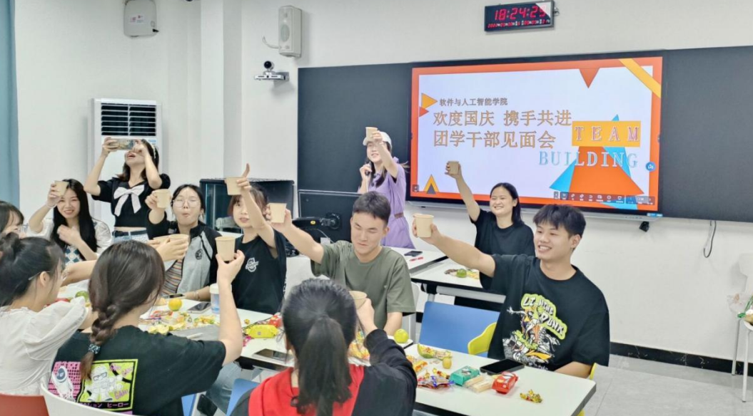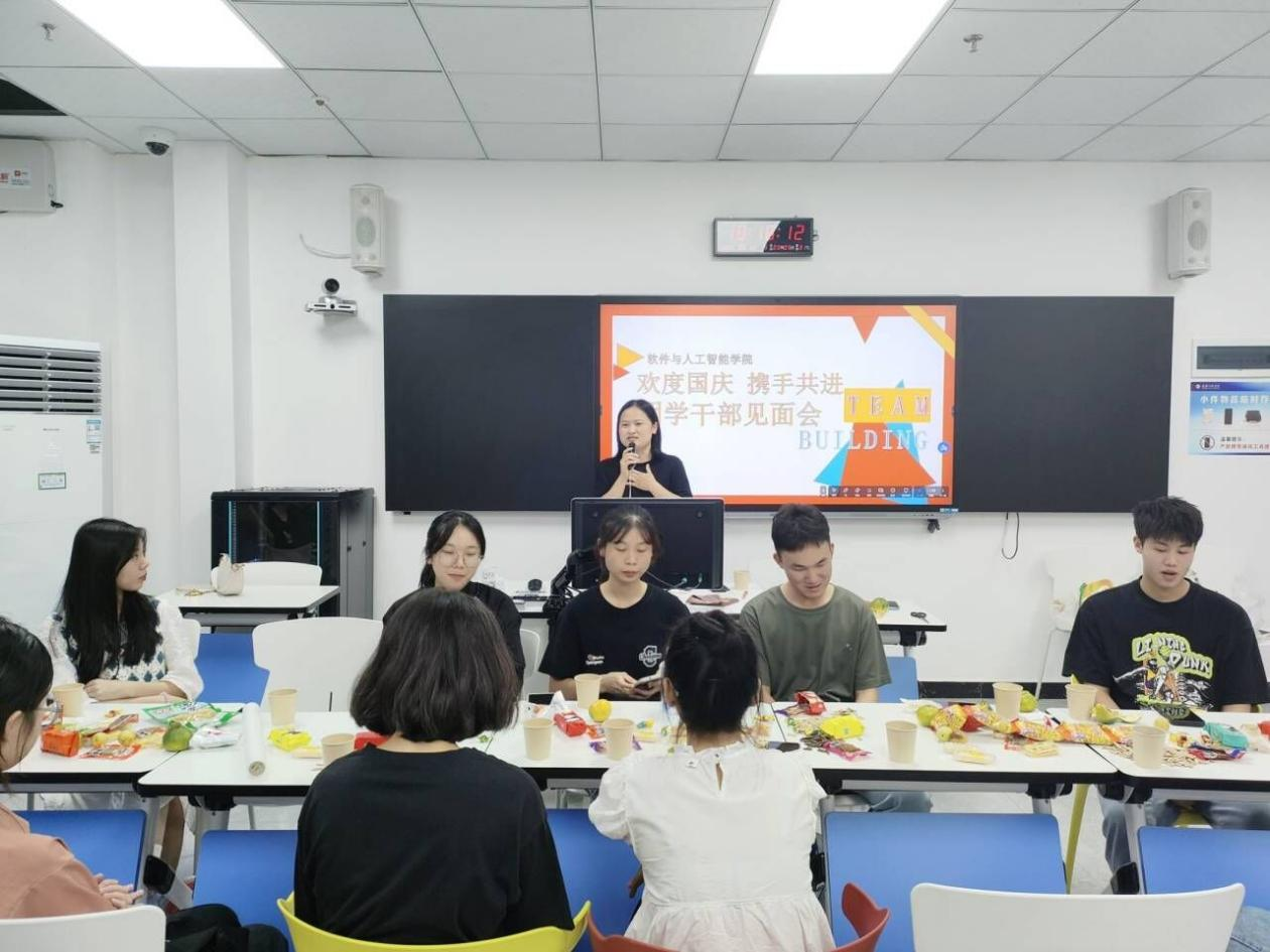 (文/图 软件与人工智能学院 毕潇元 梁娜)为增进我院学生会各部门之间的交流与合作,软件与人工智能学院团委学生会于9月30日在7208教室开展团学干部“十一”见面会,本次活动由主席团成员邓美玲主持,分团委书记王惠俊老师主讲,团委学生会全体成员参加。