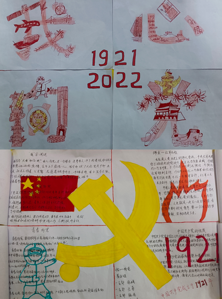 “我心向党队”展示的手抄报采用了组合的方式,用中国如今高速发展的科技标志以及各个城市的标志建筑,形象描绘出了“我心向党”这4个字,展现了新时代青年“我心向党”的坚定决心,并号召同学们要锤炼党性,对党忠诚。