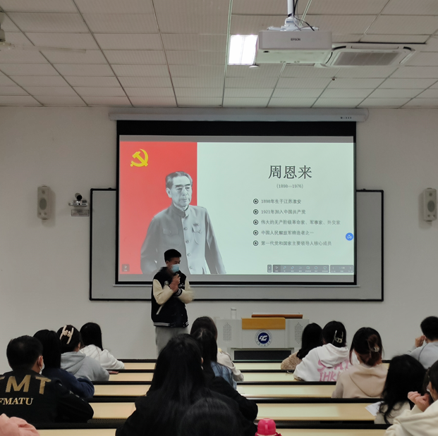 孙傑同学分享了“人民总理周恩来”的故事。“大贤秉高鉴,公烛无私光”,形容了周总理鞠躬尽瘁的一生。周总理一直践行全心全意为人民服务的初心与宗旨,为积极探索符合我国国情的社会主义建设道路、推进社会主义革命和建设事业倾注了大量心血。周总理晚年时期,在与病痛作斗争的同时仍旧保持着高强度的工作,时时刻刻为人民着想。周总理是近代以来中华民族的一颗璀璨巨星,是中国共产党人的一面不朽旗帜。