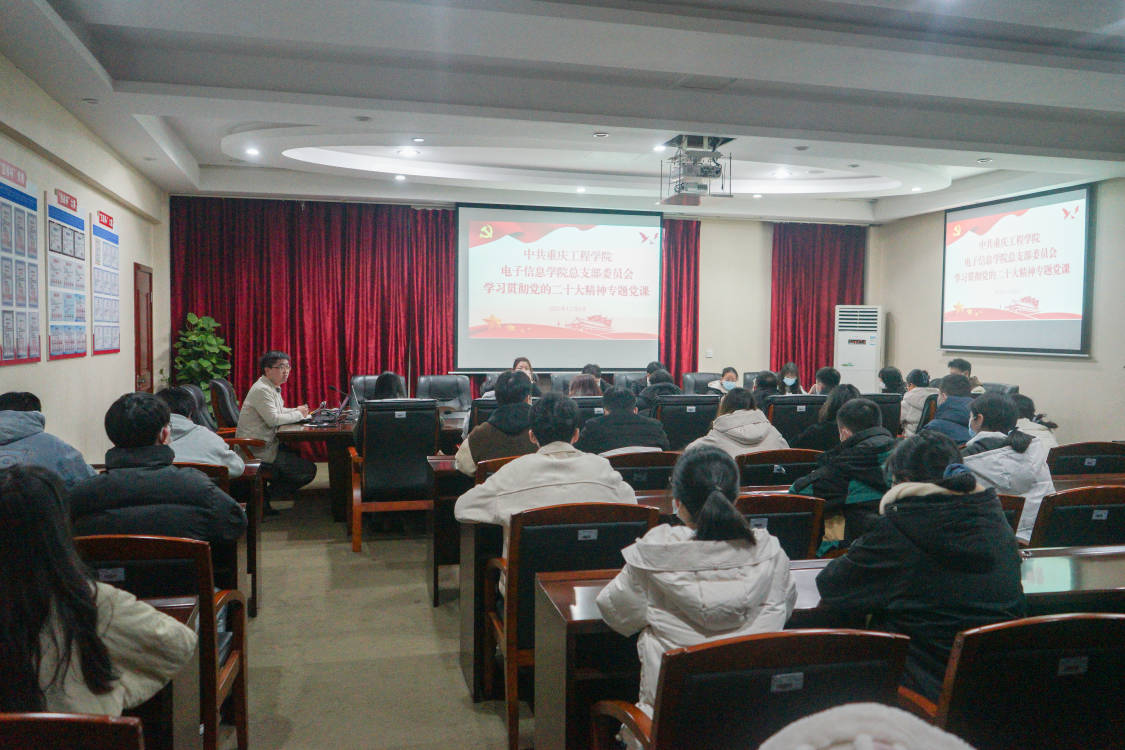 12月6日,为更好地学习贯彻党的二十大精神,电子信息学院党总支组织召开党的二十大精神宣讲专题党课,此次会议由学院党总支书记谭思宇同志主讲,学院全体党员、预备党员共计40余人参加。