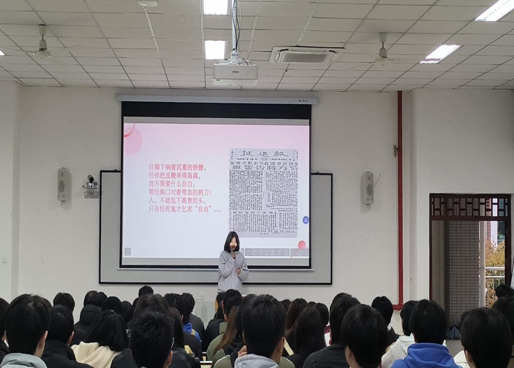 活动现场邀请6名学生党员担任主讲人,围绕“红岩精神历史内涵与时代价值”,从理想信念、爱国情怀、奋斗品格三个维度进行生动阐释。为增强教育感染力,宣讲过程中穿插了情景剧演绎、革命诗篇诵读等环节,并设计“党史知识快问快答”互动游戏,引导师生在沉浸式体验中感悟精神力量。自动化与机器人工程学生党支部书记谢燕总结时强调,“红岩精神”进班会课活动将红色教育融入日常思政体系,通过"党员领学+学生自学+实践研学"三维模式,让红岩精神真正从历史记忆转化为青春动能。