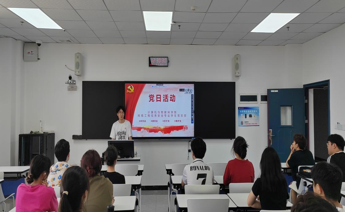 为深入学习贯彻2025年全国两会精神和习近平新时代中国特色社会主义思想,计算机与物联网学院网络工程信息安全专业学生党支部于4月18日在第七教学楼组织开展“学两会精神 践初心使命”主题党日活动。活动由支委居政华主持,积极分子以上阶段参加。