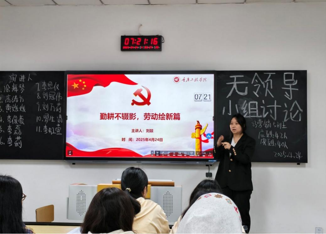 本网讯(文/左雪娇 图/李佳欣 学生党教中心)为弘扬劳动精神,传承红色基因,结合学院七培四创大学生理想信念教育方案,管理学院党总支于4月24日在第六教学楼开展“大学生微党课”进班级之“勤耕不辍影,劳动绘新篇”学习活动。