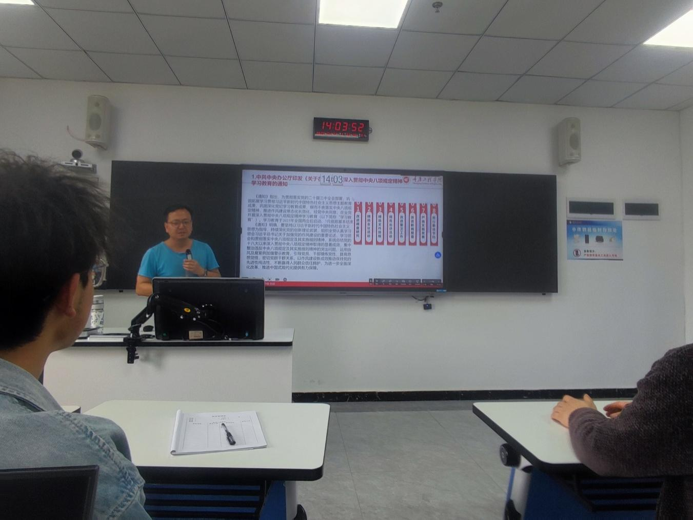 会上,党支部书记石磊领学中共中央办公厅印发的《关于在全党开展深入贯彻中央八项规定精神学习教育的通知》和《中共重庆工程学院委员会深入贯彻中央八项规定精神学习教育工作方案》,并开展了警示教育,对违反中央八项规定精神的典型案例进行通报。通过此次学习,党员教师们进一步增强了纪律意识和规矩意识,深刻认识到廉洁自律的重要性,为今后的工作筑牢思想防线。