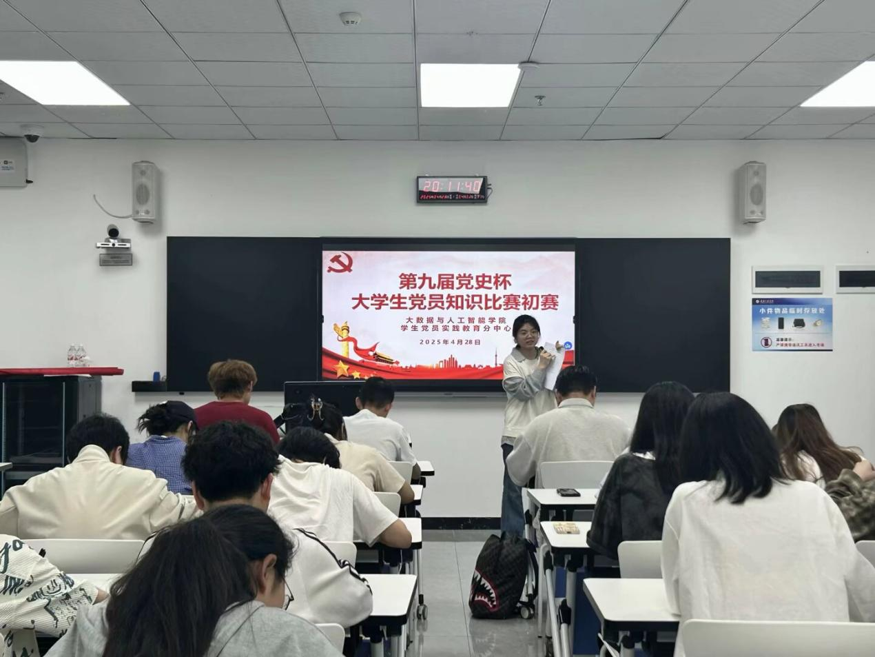 本网讯(文 /图 汪锶晨 彭永鑫)为巩固拓展党史学习教育成果,推动把学习贯彻党的二十届三中全会精神引向深入,大数据与人工智能学院学生党员实践教育分中心4月28日于7教206成功举办第九届“党史杯”大学生党员知识比赛初赛。