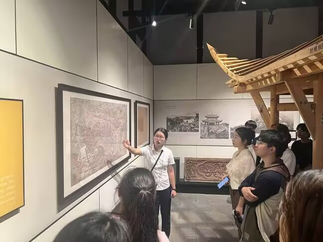 在参观过程中,讲解员依托馆内丰富的展品,细致讲解了巴蜀古代建筑的发展历程、独特风格与精湛技艺。跟随着讲解员的步伐,同志们看到了明清时期的艺术文物及传统建筑的演变形制,充分展现了东方古建筑的美,巴蜀川渝文化源远流长、海纳百川。同志们在参观到古代建筑装饰艺术时,通过使用放大镜,近距离观察建筑雕刻艺术图案,同志们不由得赞叹人们的雕刻装饰艺术的专业精巧和技艺高超。