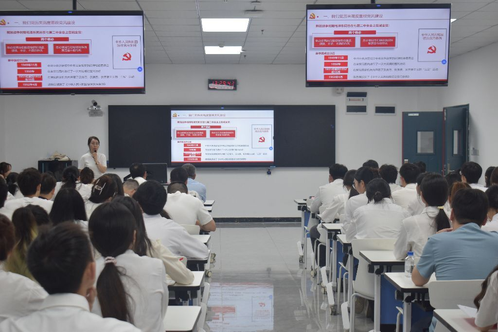 刘子菱书记从我们党历来高度重视党风建设谈起,从党成立初期首个惩治贪污文件到新时代“三不腐”机制,强调深入贯彻中央八项规定精神的战略意义。她结合系列负面典型案例,剖析了放松学习、思想淬炼缺失、滥用职权等违反中央八项规定精神的突出问题,并就基层党员及干部如何贯彻落实中央八项规定精神提出知敬畏、明底线、强担当、重实干、正心态的五点意见,要求全体师生党员要慎思、慎微、慎言、慎始,筑牢防线、守好底线、不越红线。