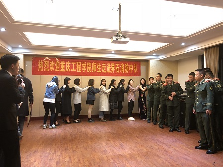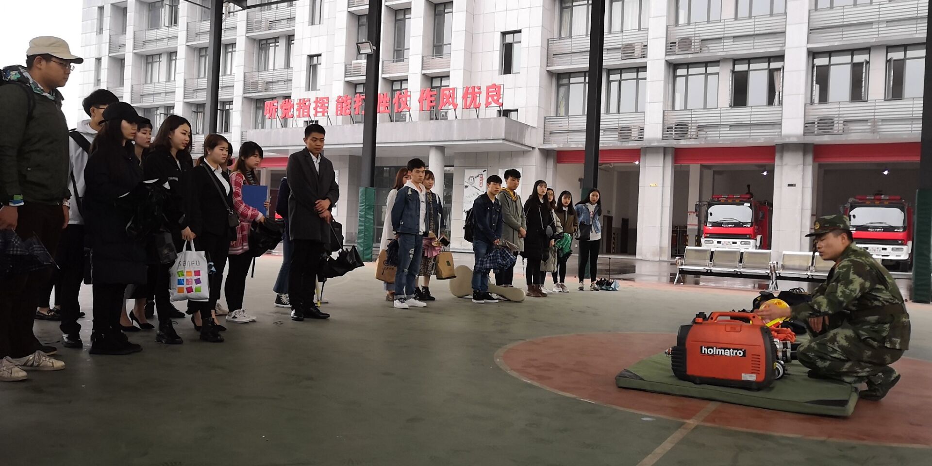 慰问演出团刚一抵达消防支队,热情的消防官兵们便带领师生们开展了消防安全知识教学培训及消防支队实地观摩活动。消防官兵们细致讲解灭火器材的种类及其性能、穿戴消防衣实地演练,并带领大家参观了官兵们的日常生活区,使得参与师生不仅零距离接触到消防相关知识,还真切体验到了消防官兵们的日常生活。