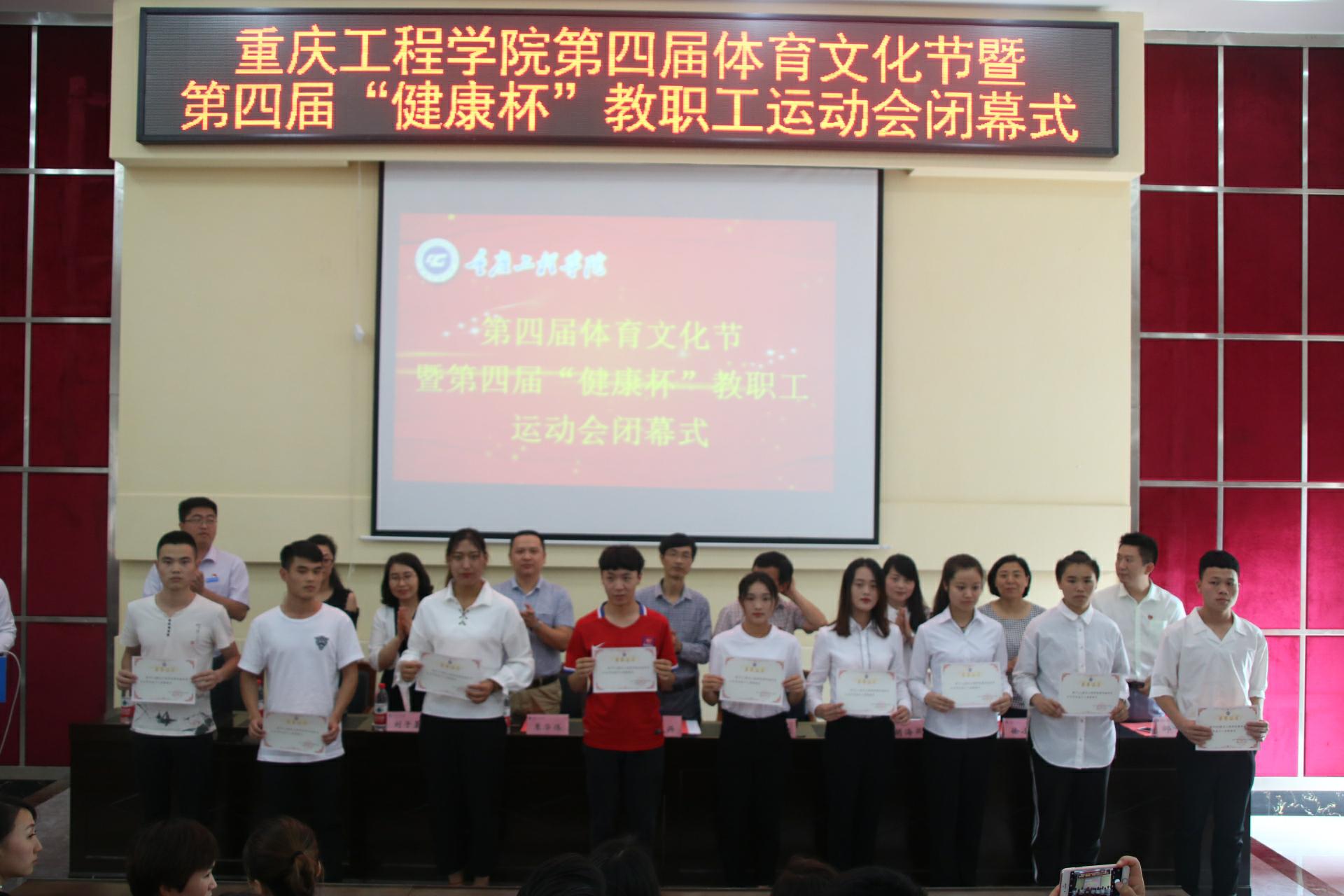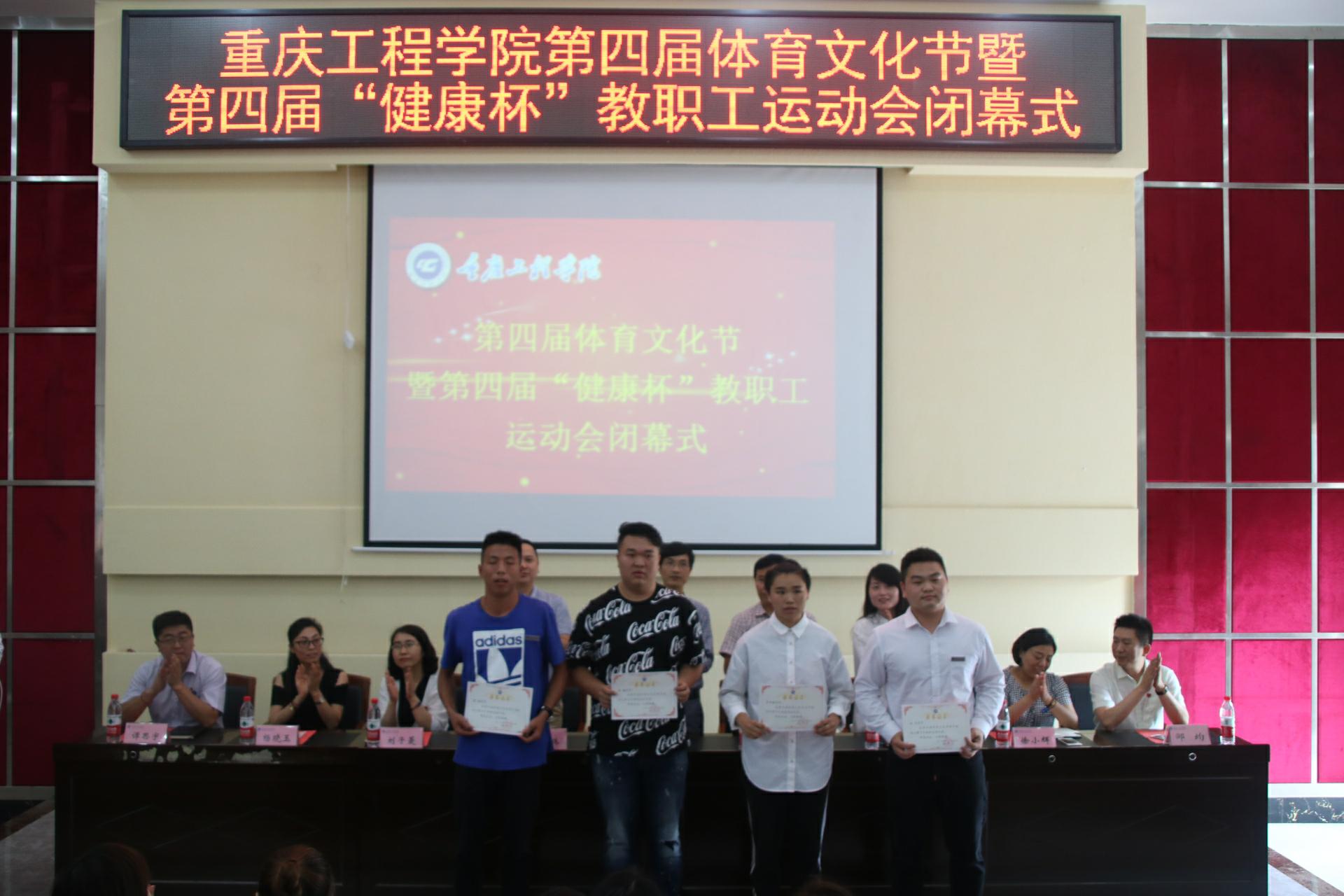学校纪委书记、工会主席唐小勇代表组委会作工作总结,两项比赛是我校建校以来第一次一场活动、两个校区、同一时间举行开幕式,4月12日开幕、6月13日闭幕,历时61天,共有1796人次的运动员参加了57个比赛项目,其中有156人次的教职工参加了个12个比赛项目,共有4人次打破校记录。主席台与会领导为第四届体育文化节、第四届“健康杯”教职工运动会获奖团队及个人代表颁奖。
