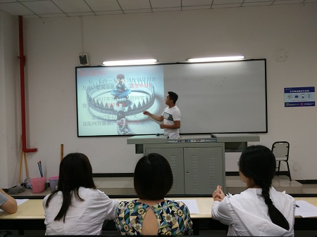 本网讯 为丰富大学生的校园文化生活,打造浓郁校园的文化氛围,提高学生演讲水平。2018年6月15日7:15“君德杯”第六月度晨课演讲决赛在6203顺利举行。素质教育中心副主任邹春霞老师作为嘉宾,覃华伟、张雪银、吴孝平、段雨辰、张琼五位老师担任评委。