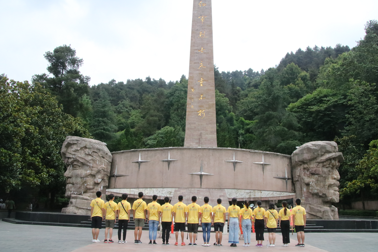 而后美丽中国实践团的全体成员于上午十点半重整行装再出发,途径红军街前往红军山烈士陵园,踏寻红色革命的足迹,瞻仰革命先烈的丰功伟绩,忆峥嵘岁月,传革命精神。登上红军山的台阶后,一抬起头便能看到正面台阶顶上是一座别具特色的纪念碑,碑上为“红军烈士永垂不朽”八个金色大字,是邓小平同志的手书。回集合点的路上,实践团成员们没有了话语,内心都十分沉重,每个人心里都被革命先烈辉煌的战斗历程震撼着,发自肺腑地既自豪又心酸。