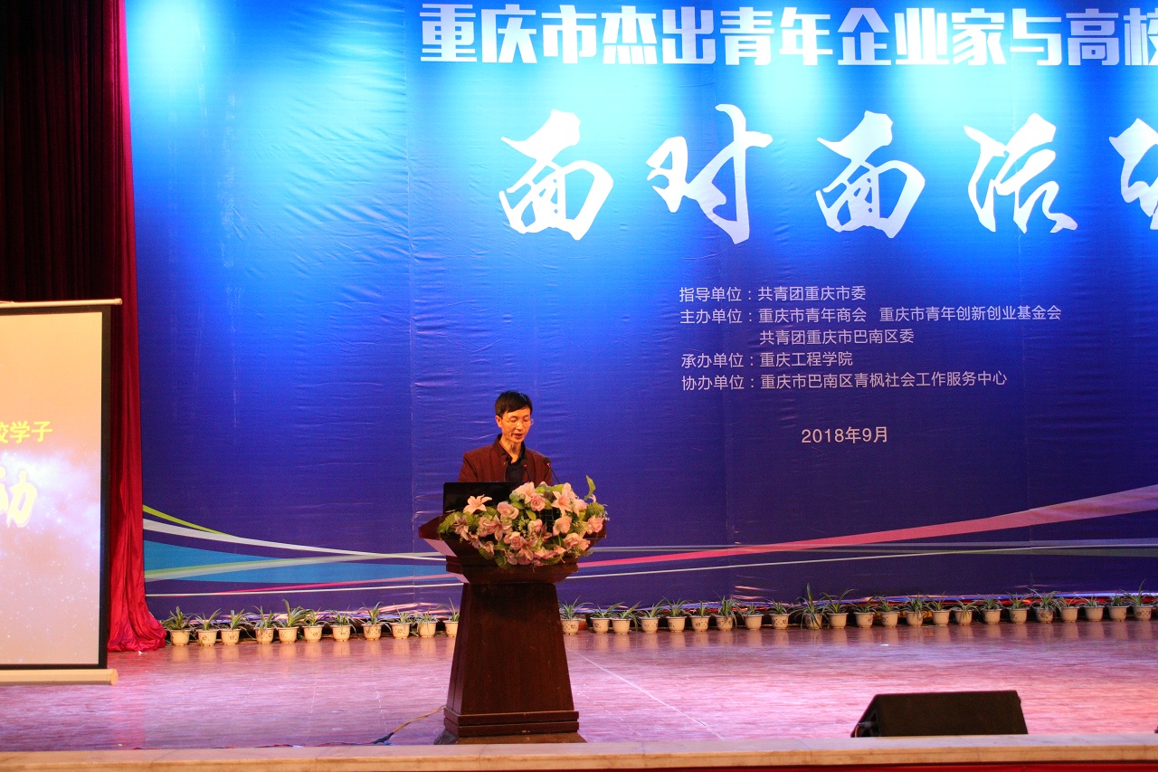 “重庆市杰出青年企业家与高校学子面对面”作为共青团重庆市委促进青年创新创业工作一项品牌活动,目的是为积极弘扬渝商精神,搭建重庆优秀青年企业家与高校学子面对面交流的平台,让青年企业家们通过分享自身创业经历、传递宝贵经验,引导青年大学生树立创新创业意识,正视创业、理智创业。“重庆市杰出青年企业家”评选是经市委、市政府批准设立的全市性社会组织评比达标表彰常设项目,由重庆市青年商会组织实施。此次“面对面”活动邀请的嘉宾,即是今年9月获评“2017年度重庆市十大杰出青年企业家”的其中两位。