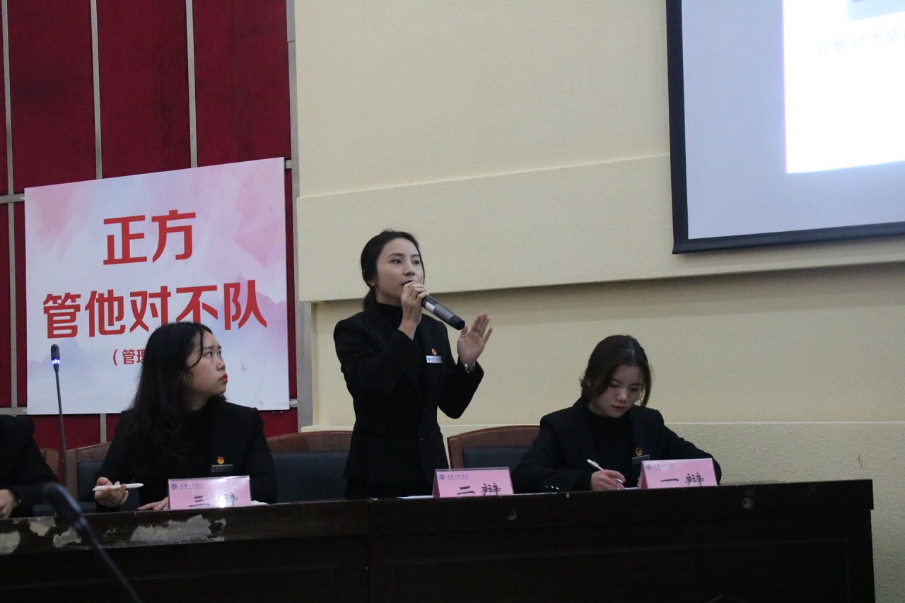 本网讯(校学生会宣传部 文/翟辉银 图/吴美玲) 2018年11月14日下午13:00,重庆工程学院第五届文化艺术节大学生校园辩论赛决赛在行政报告厅顺利举行。