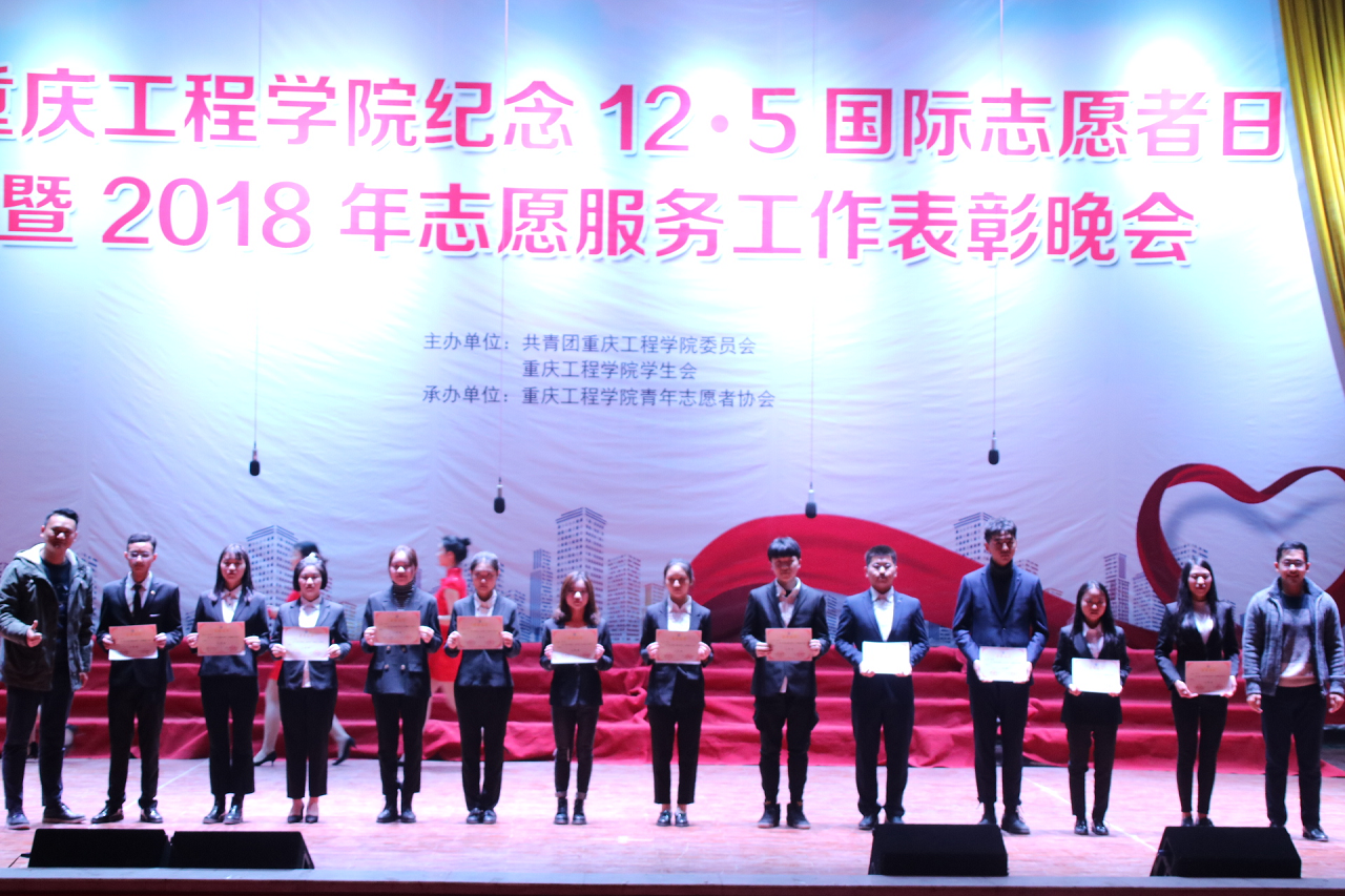 本网讯(校学生会宣传部 文/翟辉银 图/江佳励) 为了肯定优秀志愿者无私奉献的精神,为了激励更多有志青年加入到志愿者集体中来。2018年12月5日晚18:30,重庆工程学院纪念12.5国际志愿者日暨2018年志愿服务工作表彰晚会在学术报告厅顺利举行。