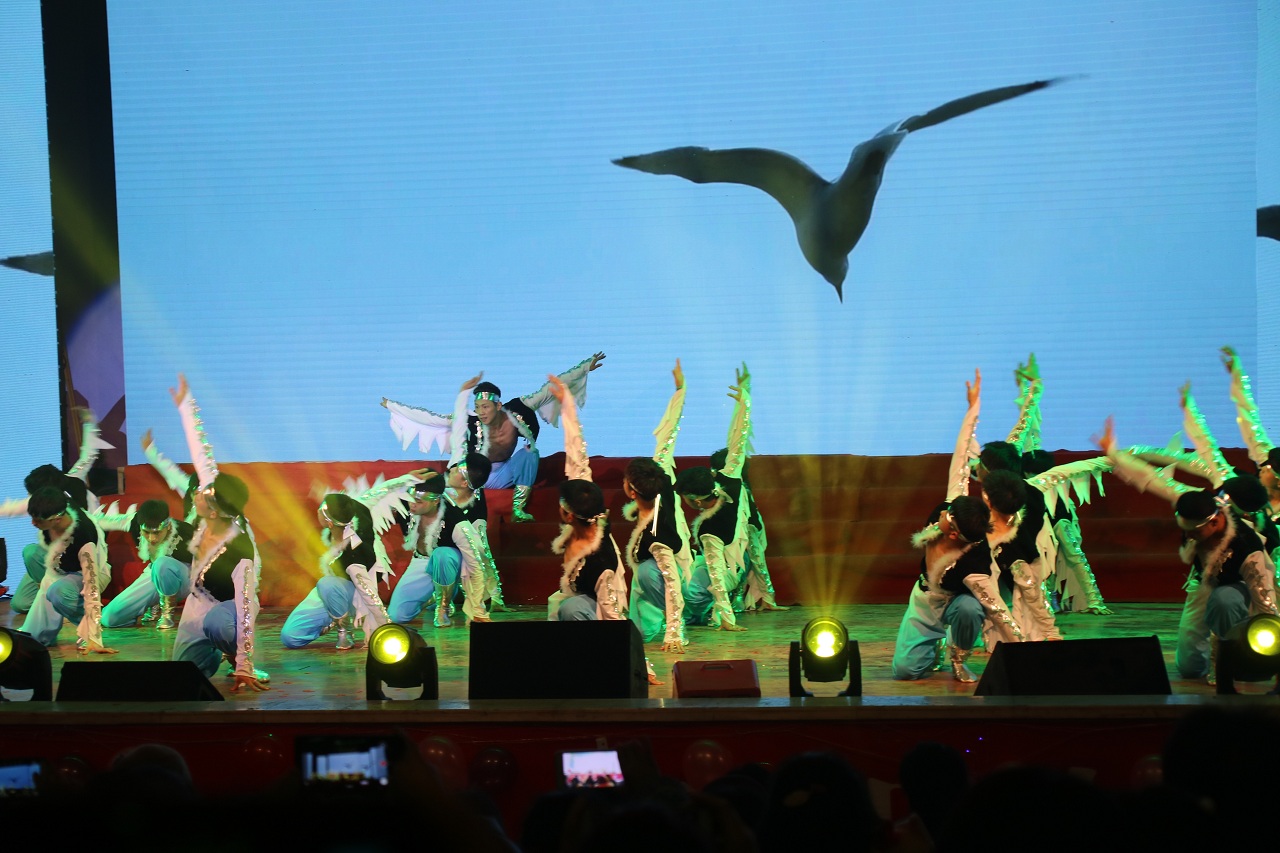 伴随着学校党委书记张业平副教授的新春贺辞,此次新年晚年拉开了序幕。整场晚会流行与古典并重,既有温柔的中国风舞蹈《喜鹊迎春》,也有粗狂的草原之舞《情系草原》;有古风的歌曲串烧《烟雨序》,也有走在潮流前沿的原创Rap《重工青年说》;温情与火热兼行,《四大才子》、《武林问道》、《精英连》等节目一次次把晚会气氛推向高潮,赢得了观众们的喝彩与掌声。