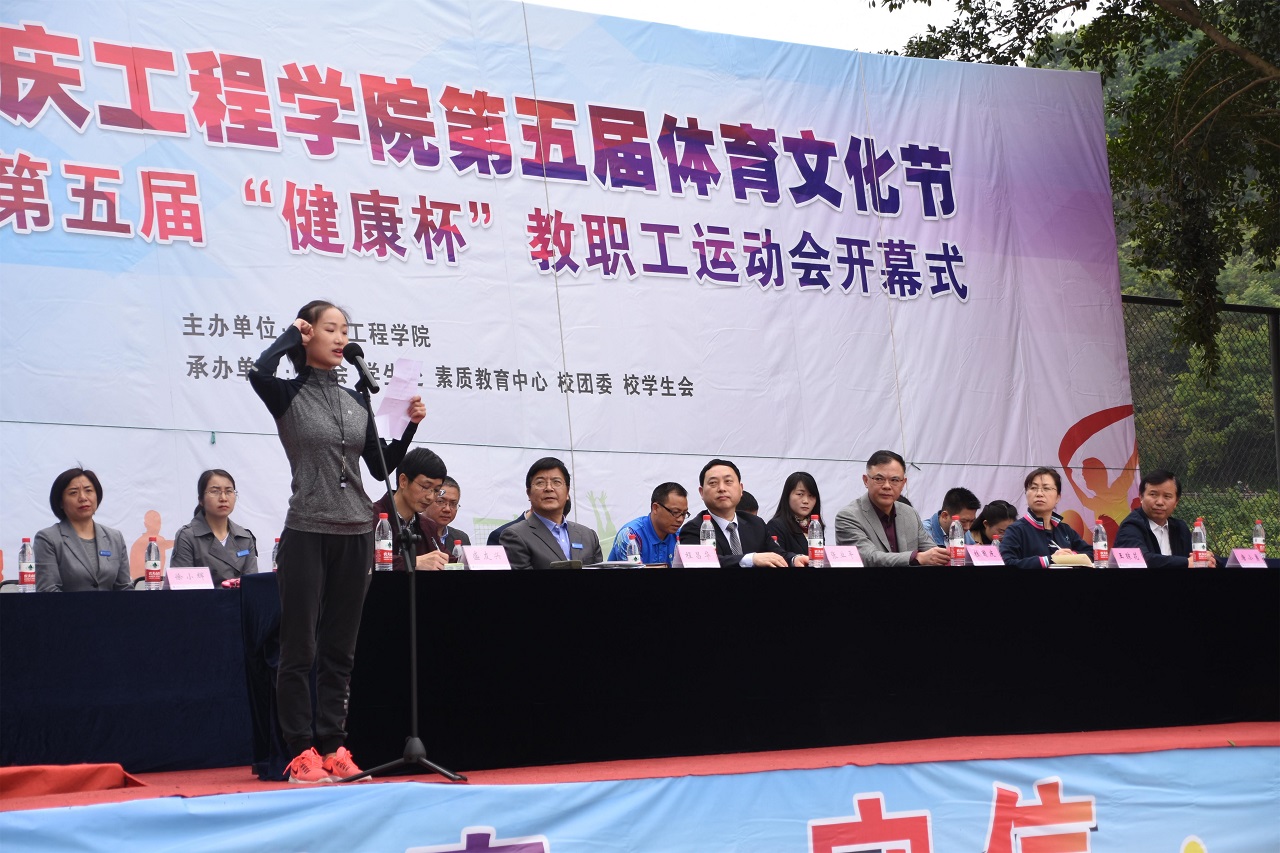 本网讯(文/朱奕州 图/江佳励) 2019年4月11日上午8:30,重庆工程学院第五届体育文化节暨“健康杯”教职工运动会开幕式在学校足球场顺利举行。