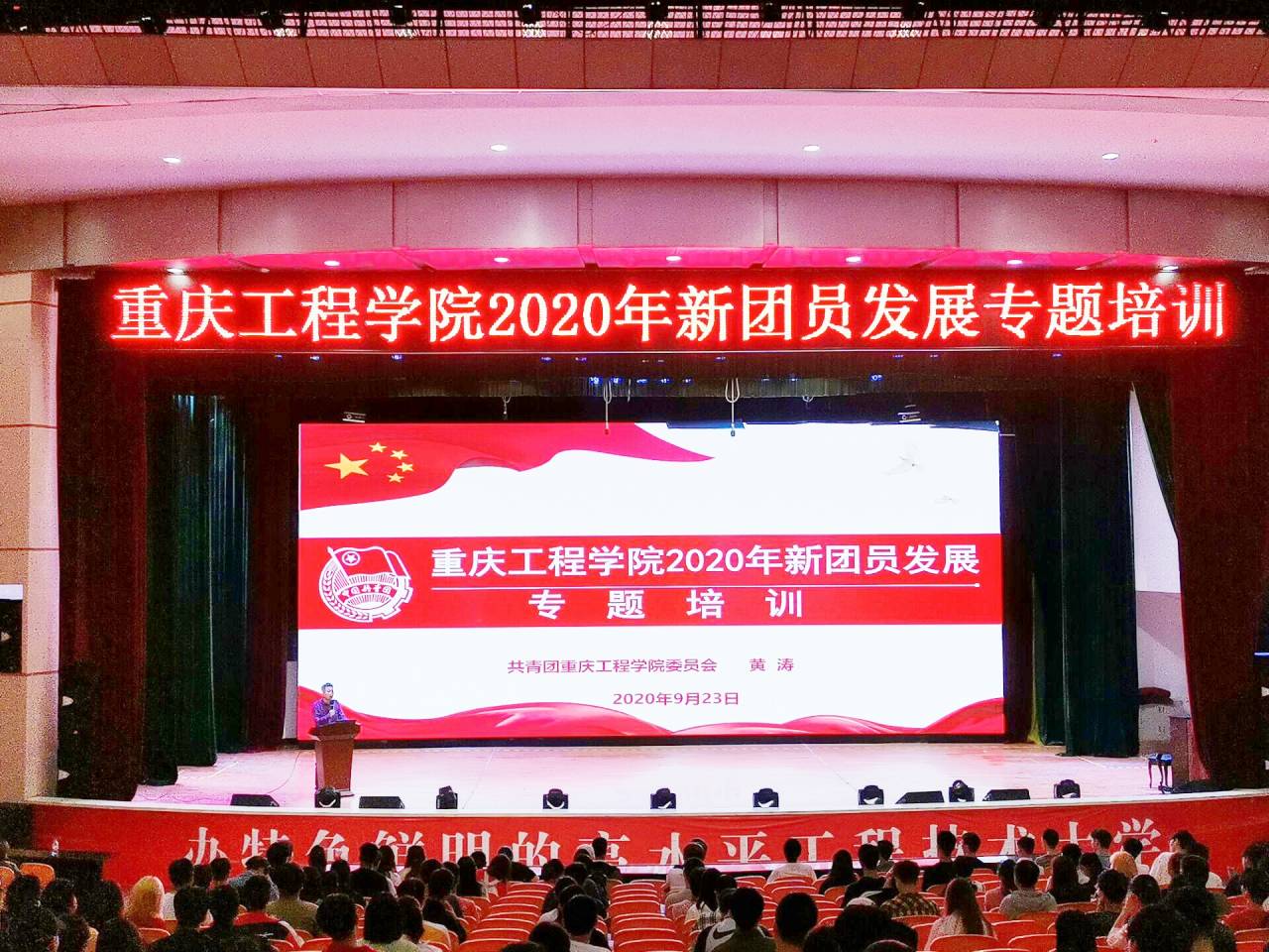 (文/图 校团委 彭璟)2020年9月23日晚,校团委在学术报告厅组织开展2020年新团员发展专题培训,全校2020年新申请入团的289名青年参与培训,培训由校团委书记黄涛主讲。