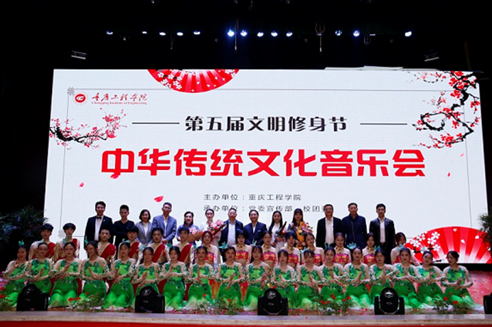 本网讯(文/校团委宣传部 图/校团委宣传部)为贯彻落实习近平总书记系列重要讲话精神,围绕立德树人的根本任务,培育和践行社会主义核心价值观,引领学生坚定“四个自信”,弘扬传统文化,10月21日晚,重庆工程学院南泉校区学术报告厅举行了第五届文明修身节开幕式暨中华传统文化音乐会。党委书记兼督导专员谭明术、党委副书记兼常务副校长张业平、校长助理王建东、各二级学院党总支书记以及部分职能部门负责人出席现场观看演出活动。